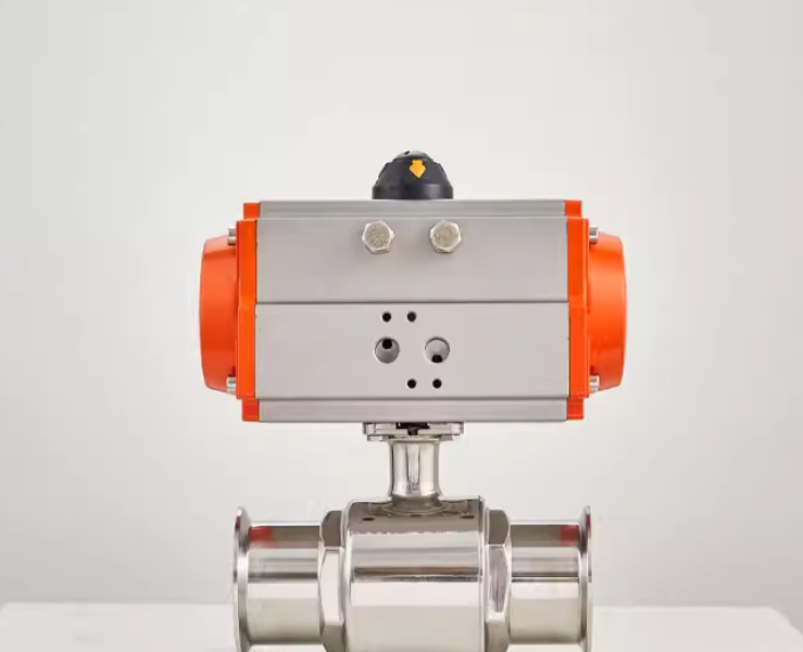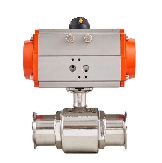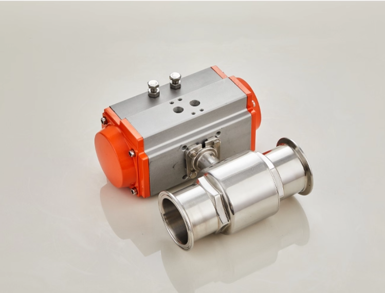 配套单作用或双作用气动执行机构,以0.4-0.7MPa压缩空气为动力源,可实现快速启停控制,球体90°回转即可完成全开/全关动作,响应速度快,适配频繁操作的卫生级生产工况。支持搭配电磁阀、定位器、行程开关等附件,可接收4-20mA控制信号实现比例流量调节,同时具备阀位信号反馈功能,能无缝接入自动化生产控制系统,实现远程集中控制。单作用执行机构具备失气保护功能(失气时自动复位至开/关安全位置),双作用执行机构可选配手轮机构,保障气源故障时手动应急操作,提升生产连续性与安全性。