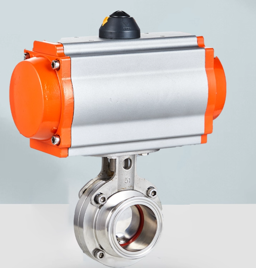 配套单作用或双作用气动执行机构,以0.4-0.7MPa压缩空气为动力源,可实现快速启停控制,蝶板90°回转即可完成全开/全关动作,响应速度快,适配频繁操作的卫生级生产工况。支持搭配电磁阀、定位器、行程开关等附件,可接收4-20mA控制信号实现比例流量调节,流量特性趋近直线,调节精度高,同时具备阀位信号反馈功能,能无缝接入自动化生产控制系统,实现远程集中控制。单作用执行机构具备失气保护功能(失气时自动复位至开/关安全位置),双作用执行机构可选配手轮机构,保障气源故障时手动应急操作,提升生产连续性与安全性。
